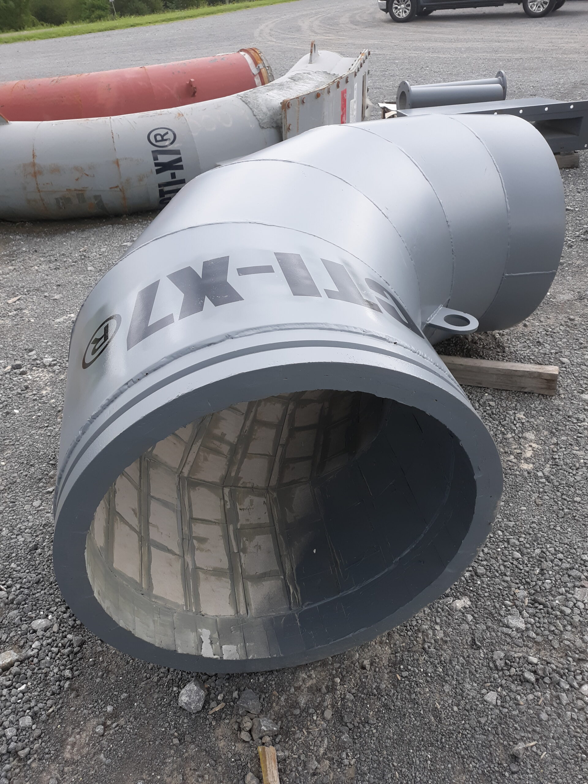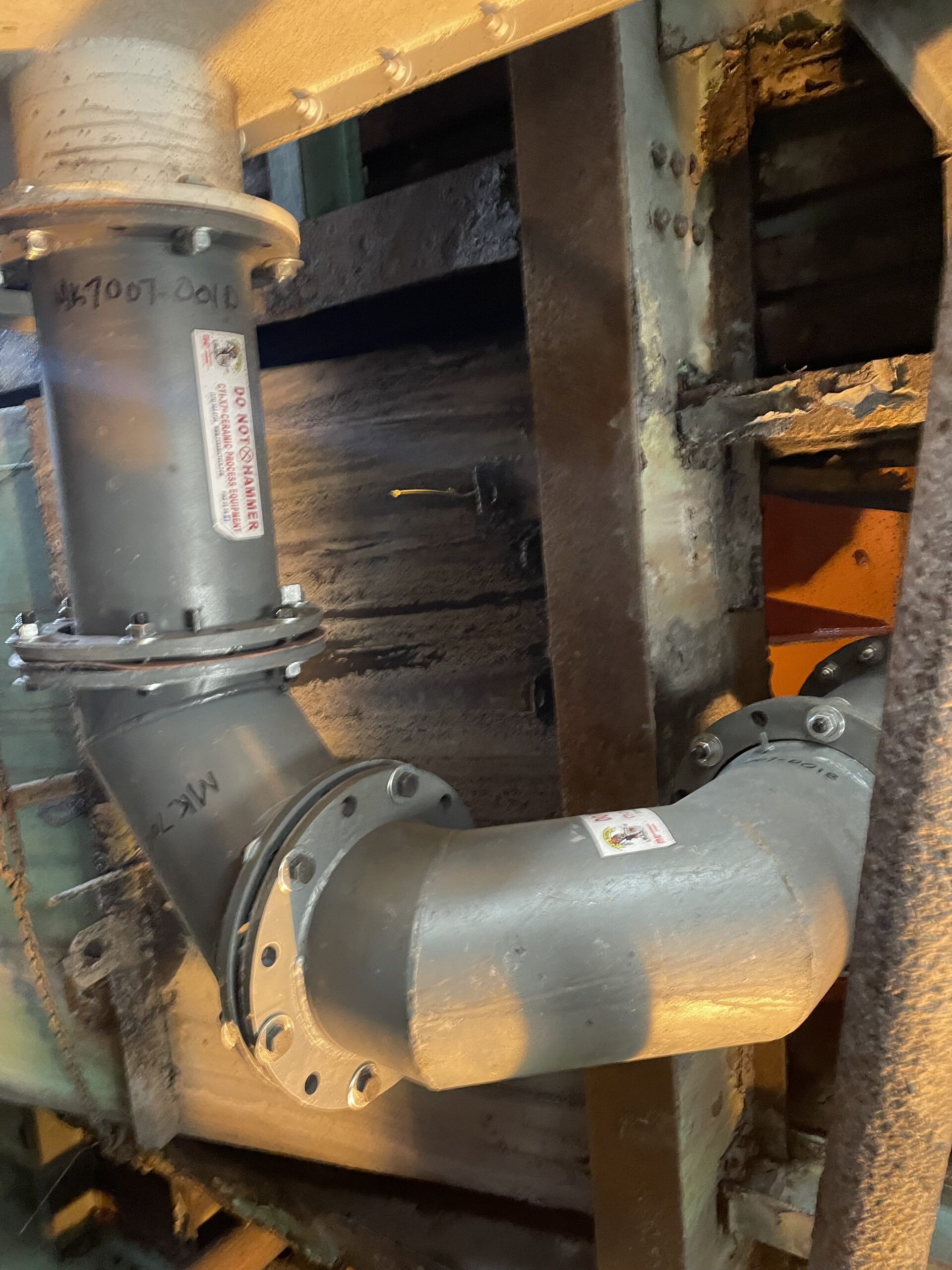 By detailing elbow impact points (sharp angular areas and areas with high velocity flows) to be lined with 1" and 1/2" ceramic tile configurations in high wear areas, we significantly increase the life of piping, elbows and fittings.